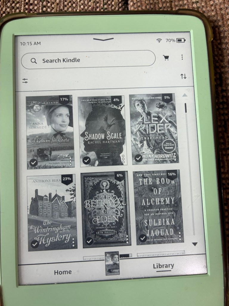 Cheesy, boarding on super silly continuing cozy mystery series that pokes fun of the Regency literature era tropes ๐I โฅ๏ธ my Kindle! Amish in April selection (Booktube Readathon), a couple of fantasy novels, a mystery, writing nonfiction, and continuing 14 yo spy thriller series! Middle Grade Historical Fiction! Canโt wait to try this! I adore anything with lighthouses!Oh my word. Iโm absolutely adoring this book. Montgomeryโs writing and characters make my heart sing. ๐๐ฅนโฅ๏ธ