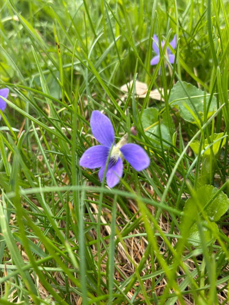 Tried to go on walk, super windy and cold. Listened to audiobook. Grabbed my son’s laundry that was on clothesline because it looked like rain. Admired the violets!