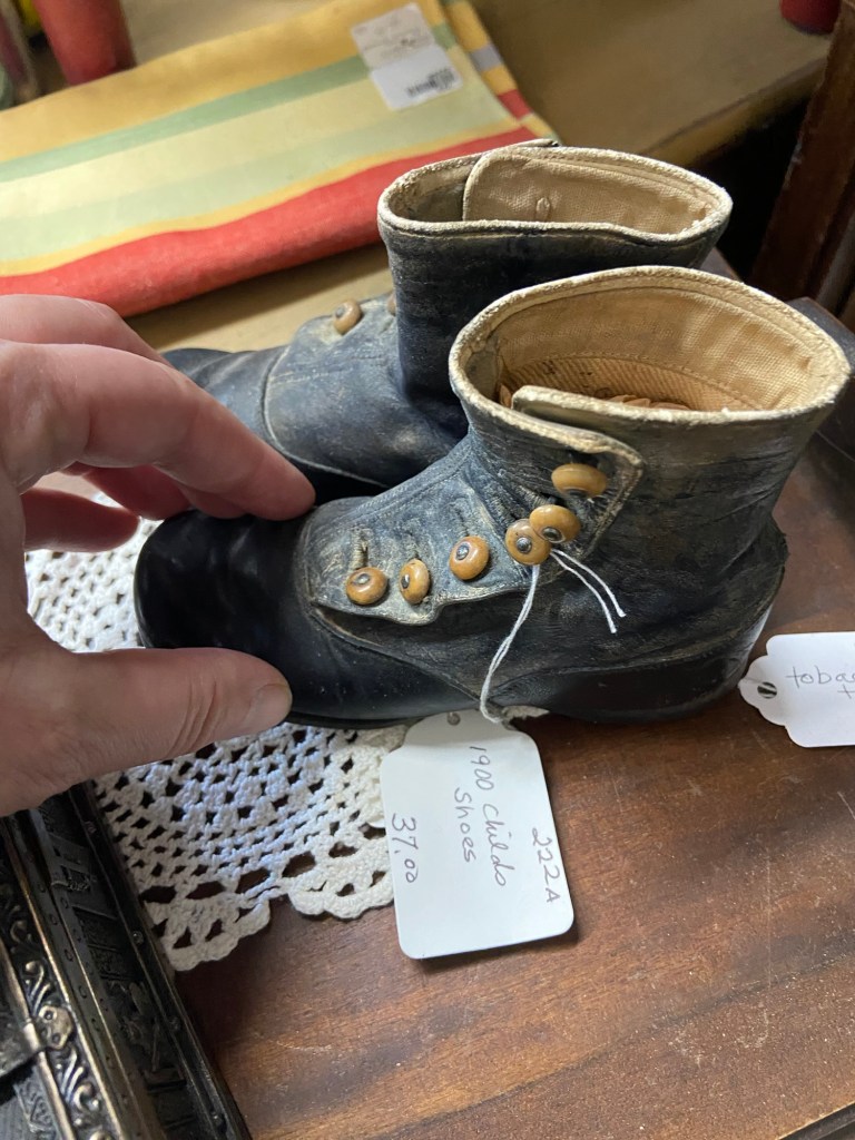 I was struck and inspired by these adorable, amazingly crafted children’s shoes on a flea market date with my hubby. There were teeny nails on the soles. 🥹🥰 The craftsmanship was astounding and frankly a bit convicting. Reminds me of the care that the artisans in the Old Testament put into creating the Temple and everything in it!