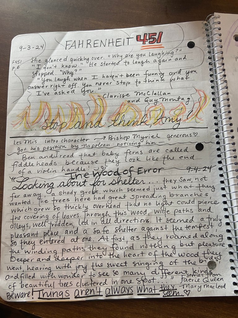 Is there anything more cozy then journaling and journals? 😄♥️ It’s no secret that I’m a journal fanatic! We are trying something different this year in our home learning of combining our multiple journals into one. I’ve had the opportunity to journal alongside my children and it has been such an enriching experience. I don’t often share my children’s work, as that’s their own, but don’t mind sharing what I’ve been recording myself. 😆 So much richness! 😍I’m learning every day right along with my children. I have music lyrics, quotes, drawings, etc in here already! I treasure it. Do you journal?