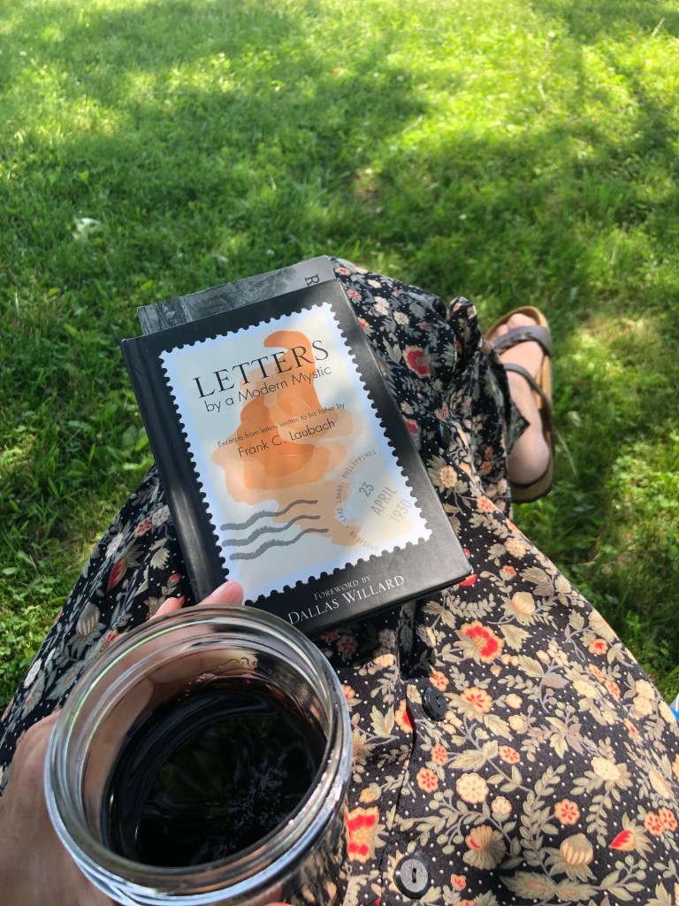 My husband shared this with me recently and it’s one of those things I know, but don’t know. He has been longsuffering as he listens to my lamenting. The official homeschool books have been shut with a slightly dusty bang for a few weeks now, but our learning goes ever on in other ways. My little bit of a green thumb has been poking and prodding in the soil, seeds in and watered, the local lake has had a dip of toes or oar once or twice, and the hammock never lacks for company. Hay fields smell richly fragrant, that warm, freshly baked, right out of the oven smell breathed deeply in, drifting through our open Prius windows as we zip around, errands and farm part pickups with above said hubby. Sigh, ’tis a blessed country life. We’ve gotten piles of treasure from our local library, delicious gems for our hearts and minds, I’ve been enjoying the time to dip into my stacks, curled in the hammock or big, chocolate, fluffy new-to-us arm chair. I especially am loving Letters by a Modern Mystic by Frank C. Laubach, which is challenging my prayer and thought life.