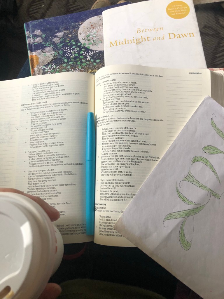 I’m determined in my heart 💜 to choose again (and again and again) Jesus’ joy and resurrection power. Just making conscious choices that I know help me pay attention and relax into the Lord. Prioritizing my quiet time. Going outside. Holding online things very lightly, getting dressed in comfortable clothing I love, doing a little summer mom learning project with a IRL friend, taking good care of myself and my family, finishing little projects I love, and doing small, short trips. Not giving into overconsumption in any area of my life – frantic reading, buying random stuff, food, media, but a soaking in the Life-Giving Abundance of Jesus!